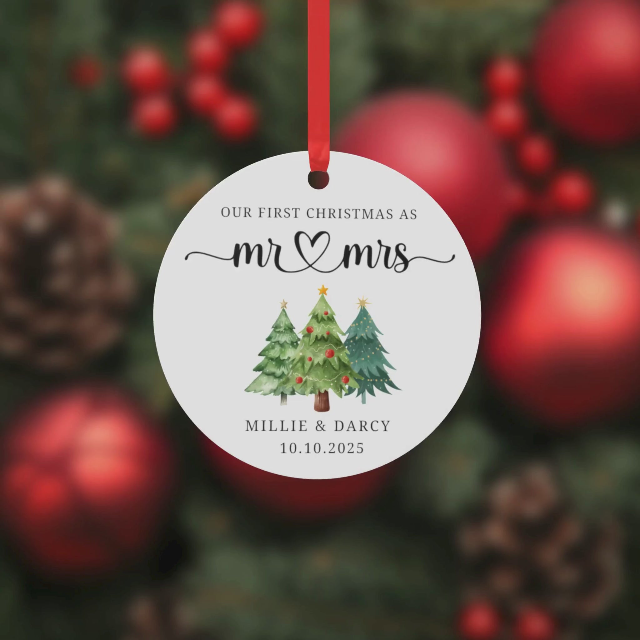 Our First Christmas Married Ornament – Custom Names & Year Keepsake