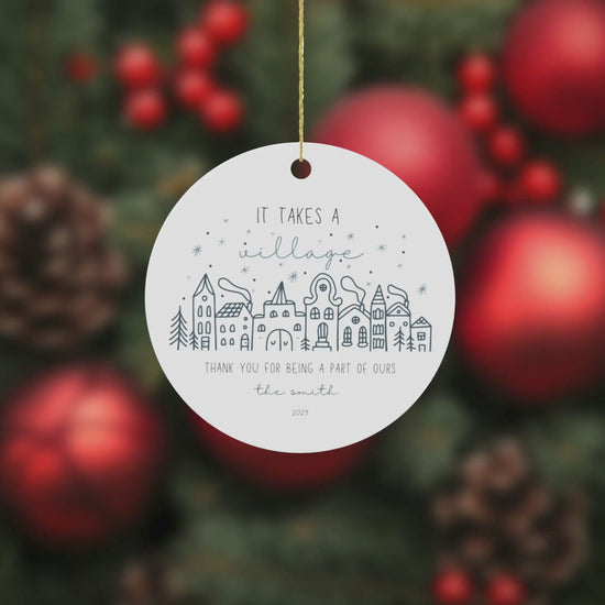 ooking for the perfect teacher gift this holiday season? Show your appreciation with a custom ornament featuring the heartfelt quote: “It takes a village. Thank you for being part of ours.” Add your favorite teacher’s name (and yours!) to make it truly personal—a keepsake they’ll cherish year after year. 🌟