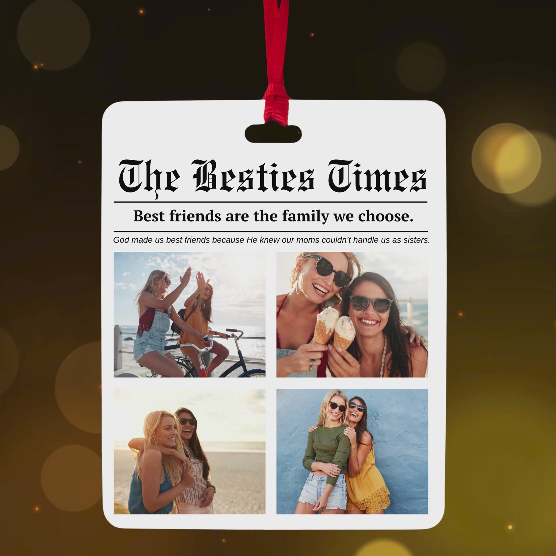 Celebrate friendship and laughter with this custom-made ornament featuring the fun quote, “ Best friends are the family we choose. God made us best friends because He knew our moms couldn’t handle us as sisters.” A perfect addition to any Christmas tree and a keepsake that brings smiles year after year.