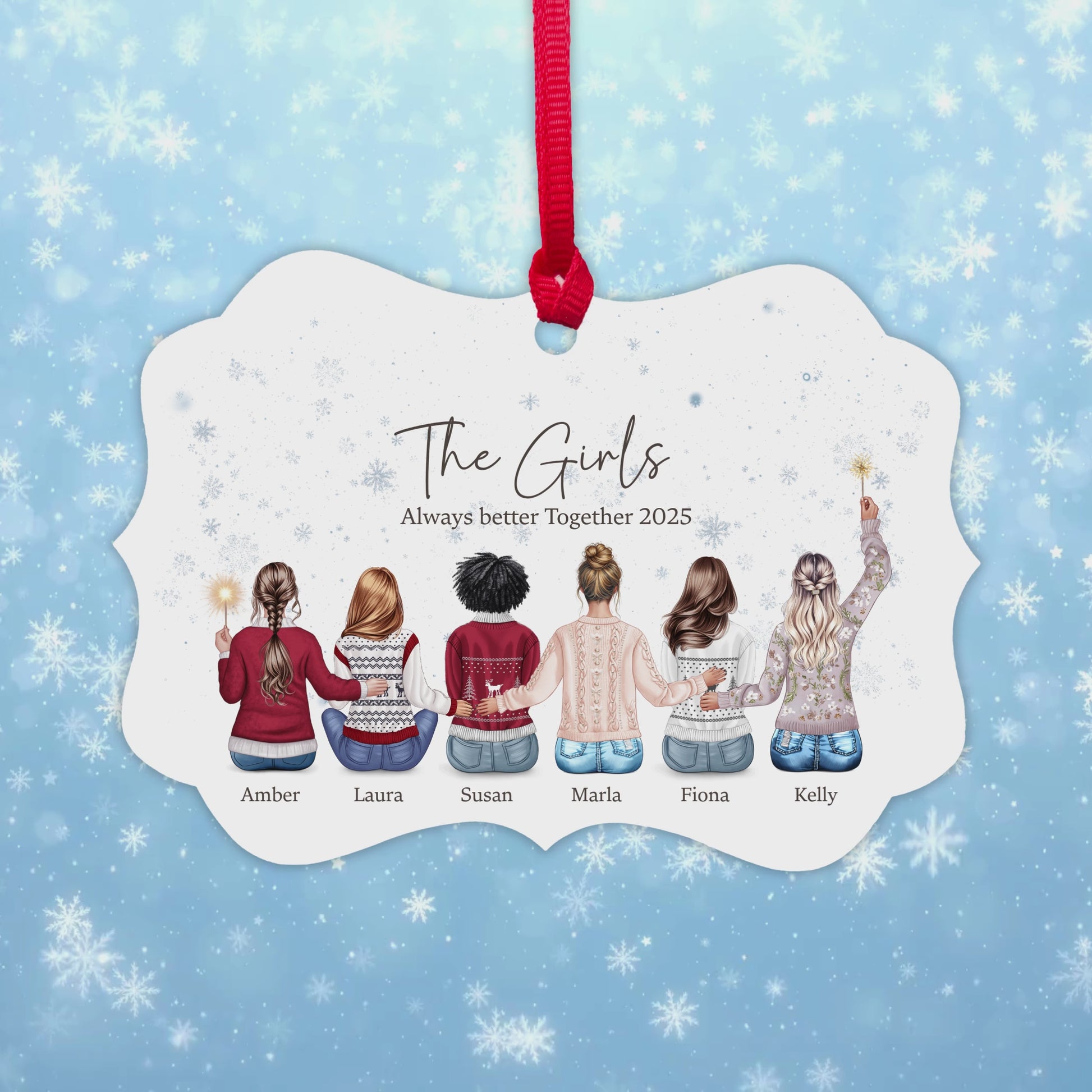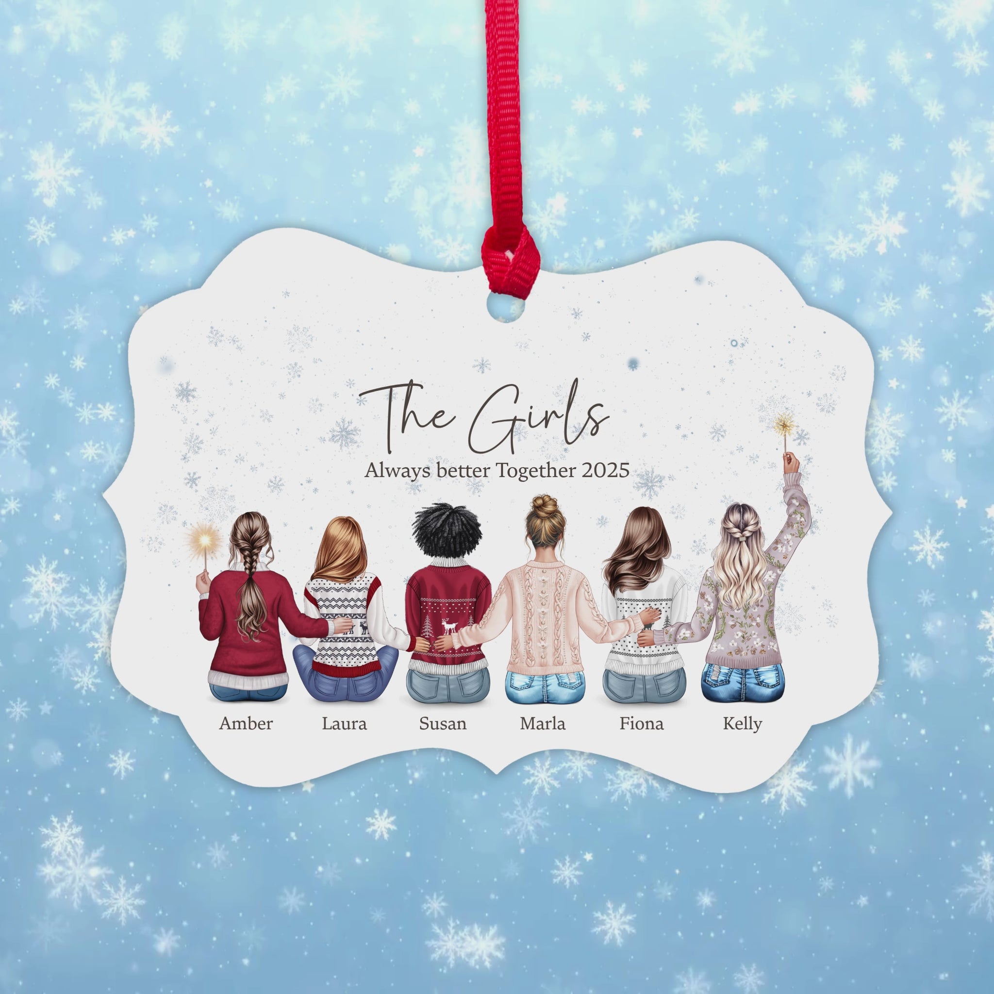 Personalize your ornament with Personalize your ornament with up to 6 women - body type, skin tone, and over 80 hairstyle & name options to capture your friendship perfectly!
