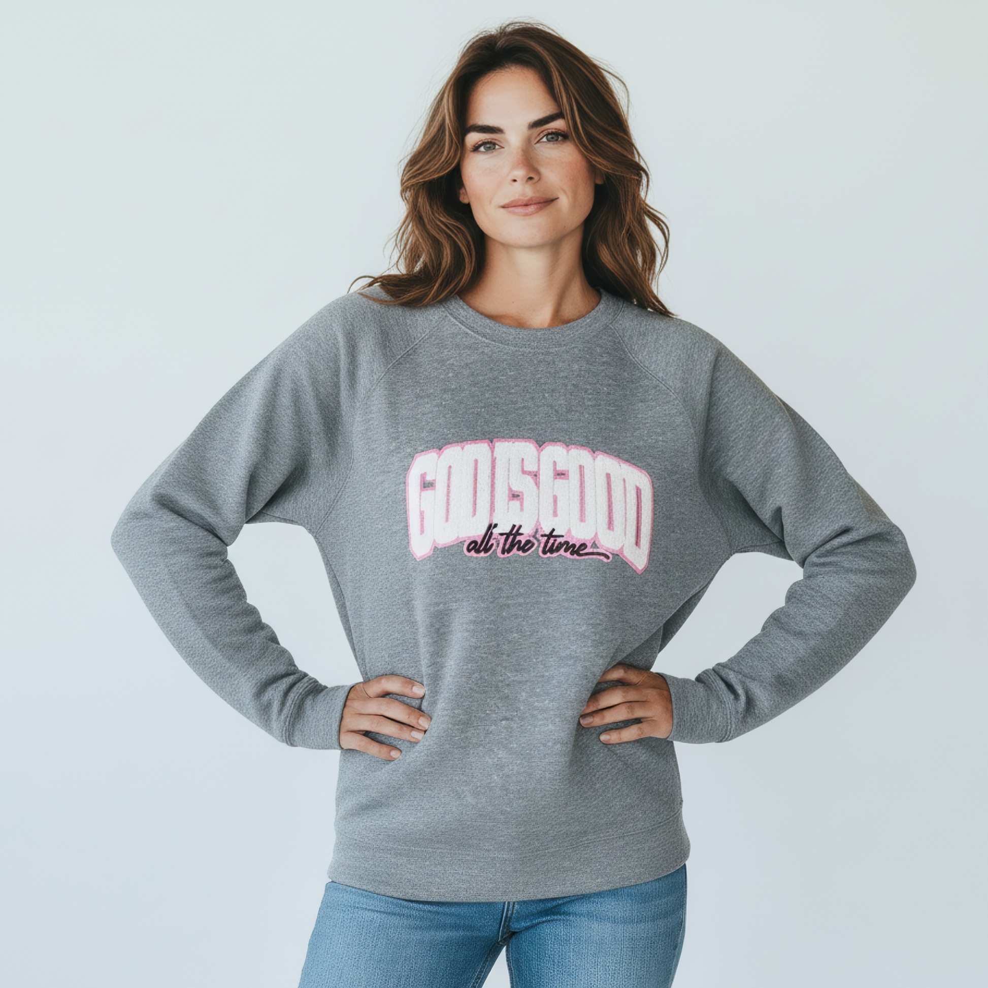 Wrap yourself in comfort and inspiration with our “God Is Good All The Time” Chenille sweatshirt. Made from premium Triblend Gray fabric, it offers a soft, cozy feel with a relaxed fit perfect for everyday wear. Whether you’re heading out or snuggling in, this sweatshirt is a meaningful reminder of faith and positivity.