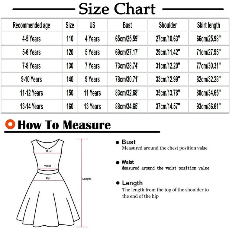 - Size selection: This dress is suitable for ages 3-12. Please refer to the detailed size chart information to choose the most suitable size.